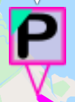 移動したマーカーは、その業者の位置として記録され、次回、ピックアップに向かう時に住所アシスタントに登録位置として表示できます。これは、名称で検索してナビできない業者の場合や、入口、駐車場といった正確なナビ位置を登録したい等、ご自身で業者に対するナビ位置を登録しておきたい場合に使うことができます。位置が登録されている業者のPマーカーには左上に水色のマークが付きます。