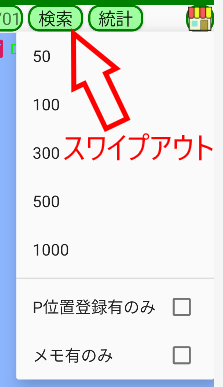 また、「P位置登録有のみ」「メモ有のみ」を選択すると、それらのみを対象として検索することができます。