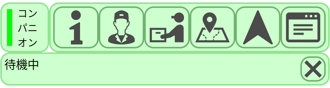 これはユーザー補助サービスと接続できているかどうかを表しています。緑色は接続中、赤色は接続できていないことを表します。もしも接続できていない場合、コンパニオンは正常に動作しませんので、Androidの設定にあるユーザー補助の中から「Delivery Driver's Companion」をオンにするか、それでも接続できない場合は、スマホを再起動してみてください。