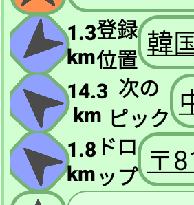 高速事前住所検索で先行して結果が判明し、ナビボタンに方位と距離を表示する時は、少し暗い青色になります。その後、通常の事前住所検索の結果が出たら通常の色になります。