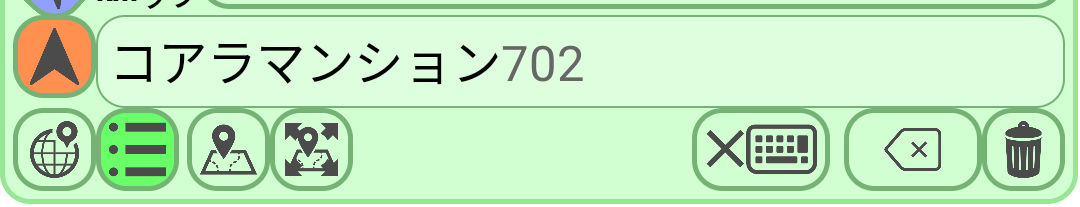 編集行では住所の不要な部分を削ったり書き換えたりといった編集ができます。そうして編集したテキストを用い、編集行左側のナビボタンでナビを開始できます。