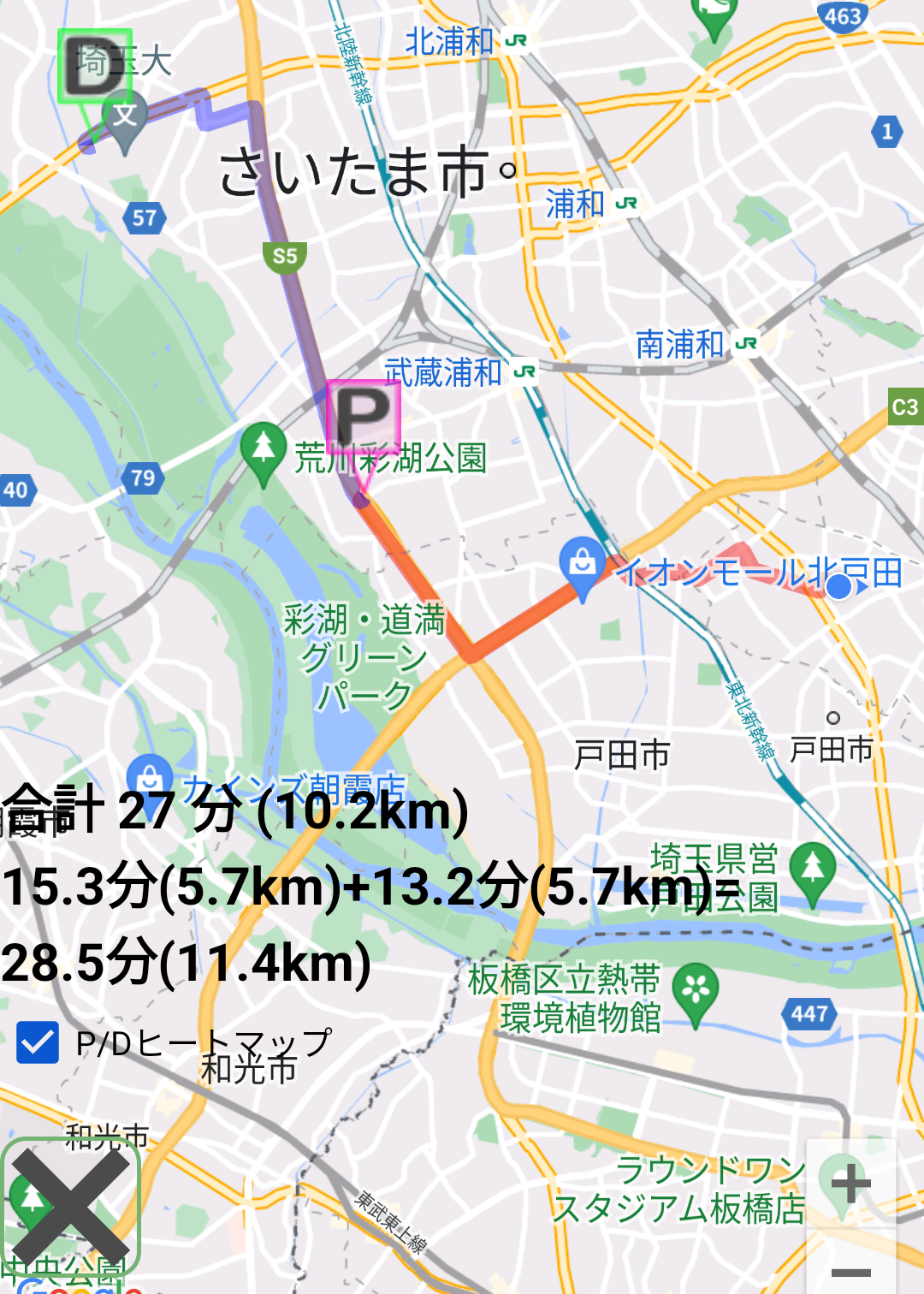 ジオコーディングやルート探索には、少し時間がかかります。ジオコーディングが終了したタイミングで、タイトル部分に地図のアイコンが表示されます。