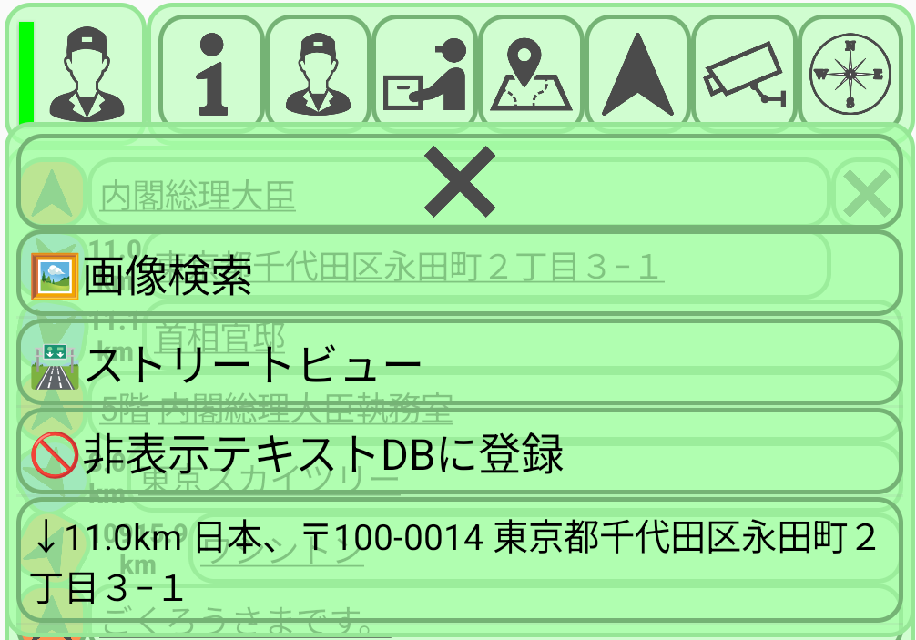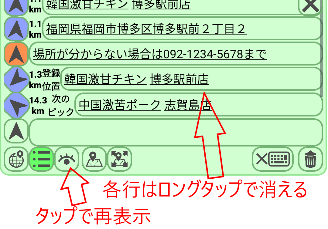 住所アシスタントの特定のテキストを非表示テキストDBに登録して恒久的に非表示にできます。同じ内容のテキストは今後、はじめから表示しません(はじめからロングタップして非表示にされているのと同じ状態になります)。