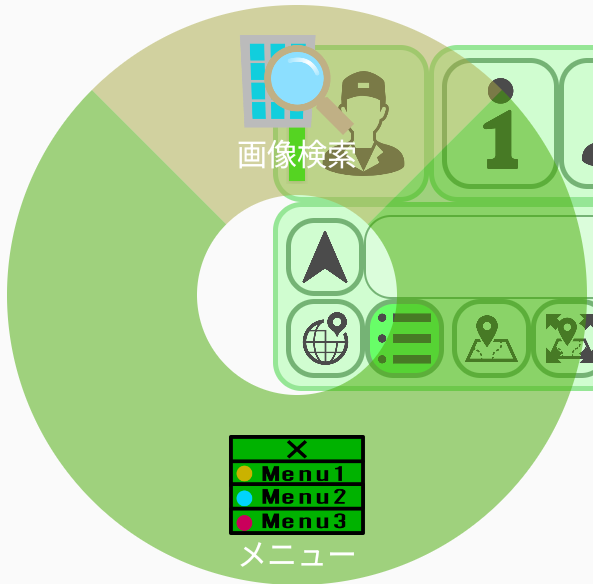 コンパニオンアイコン等、一部のボタンをタップすると、リング型の補助UIが表示されます。
